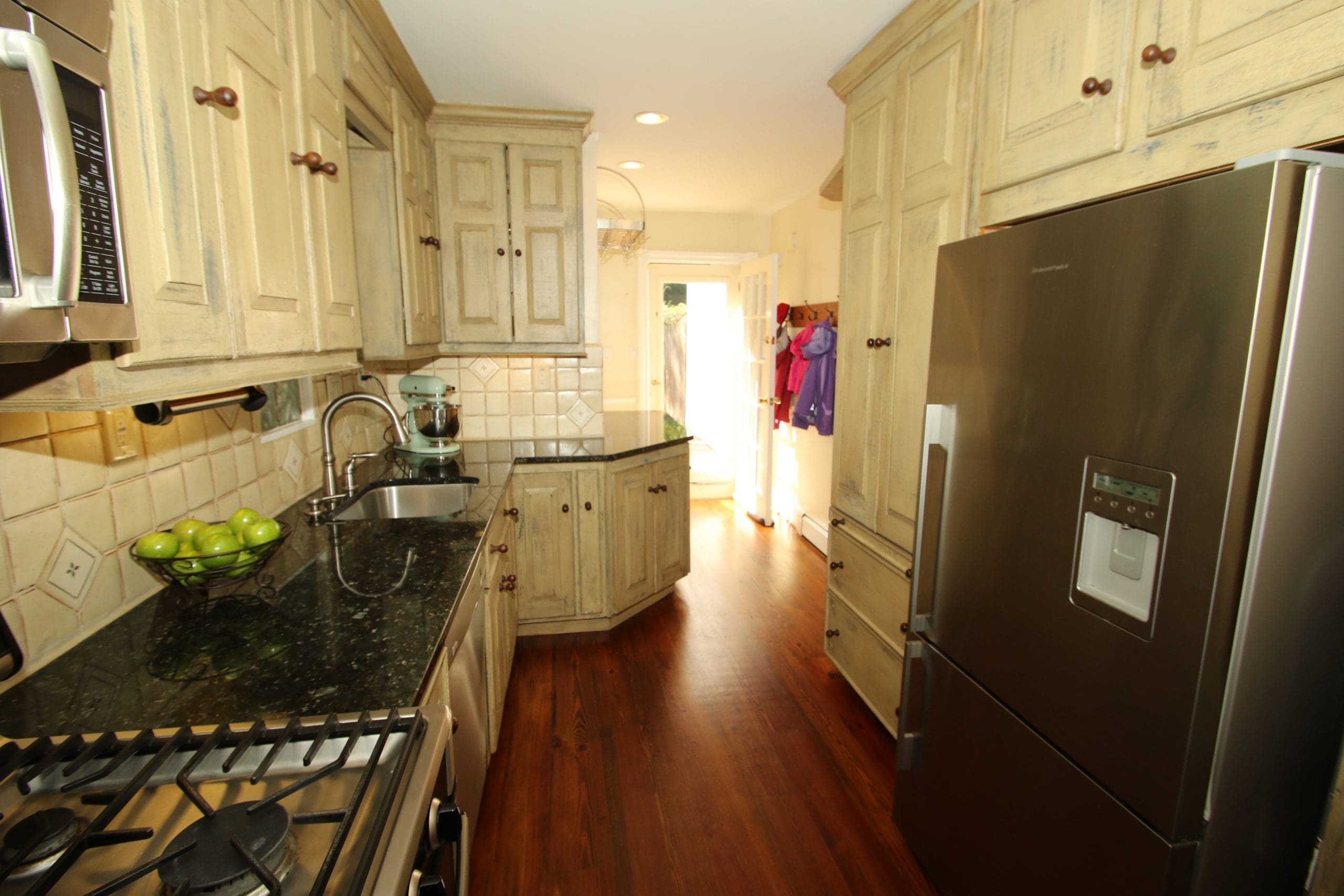 Enter the front door of this 1880’s home and feel the rush of history, along with the compliments of today. The living room greets you with high ceilings, classic crown molding and chair rail, as well as a gas fireplace with marble surround. From the living room, you transition into the home’s truly unique dining room. The 2-story atrium ceiling with large skylight floods the space with generous natural light. In this room, the current owners designed and added a built-in stand-up desk that includes hidden AV/IT spaces, file drawers, and letter compartments. The desk top is made from heart pine, the same flooring throughout the house. Moving into the beautifully renovated kitchen, immediately notice the character of the cabinets, new sink, the gleaming granite counters, and Bosch stainless steel appliances. The renovation made the most use of the space and offers ample cabinet and counter space, accented by under cabinet lighting. There is a half bath and also walk-out access from the kitchen to the home’s private fenced brick patio and garden. You will be surprised at the depth…it is almost 80′ long!