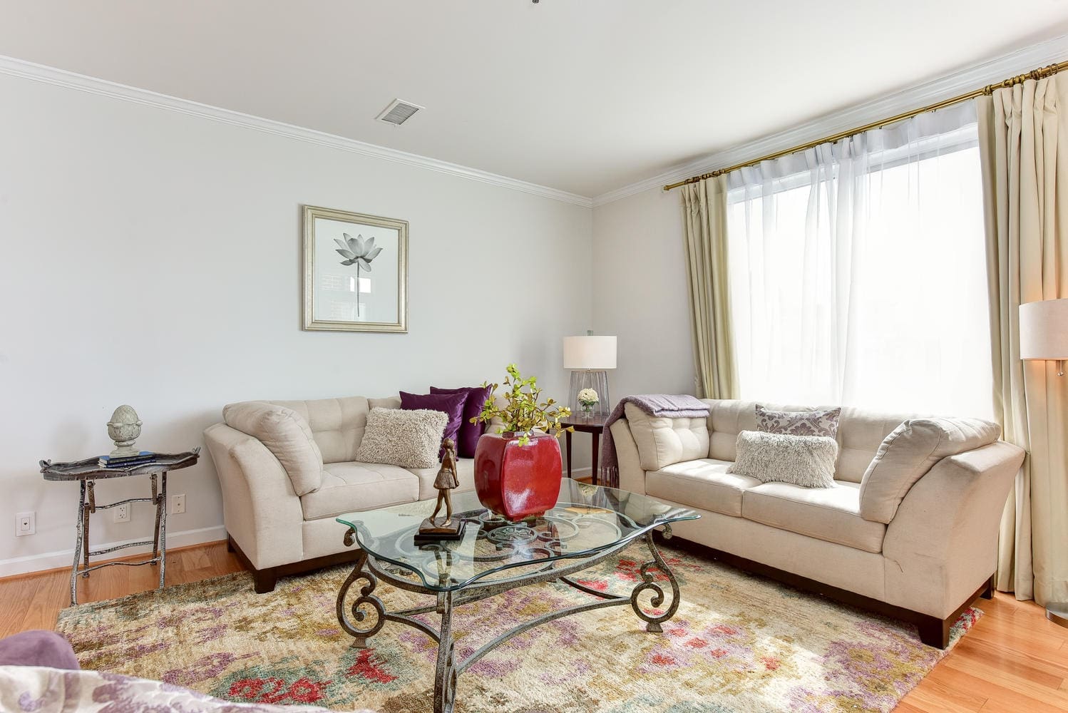 - Gleaming hardwood floors and 9+ ceilings