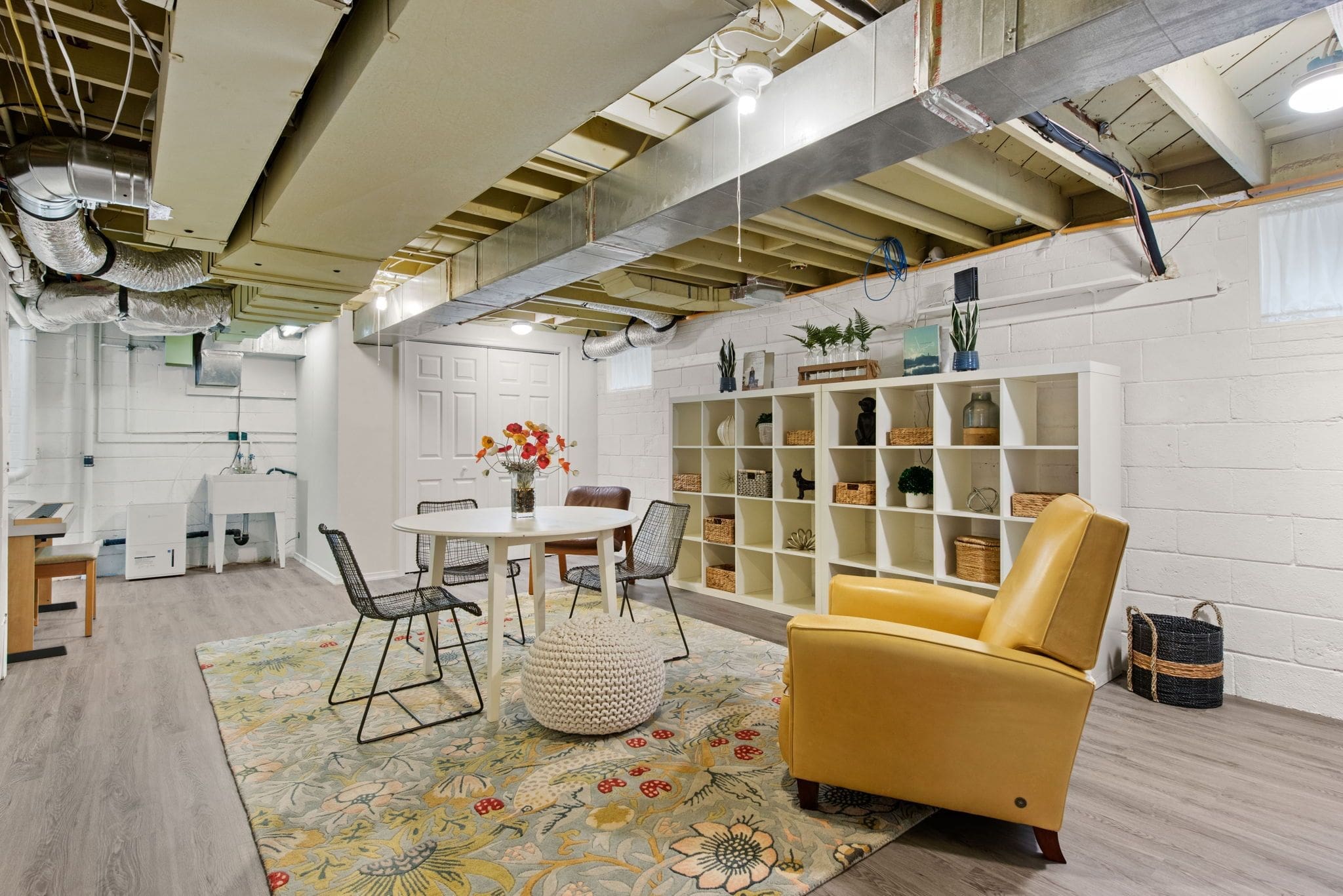 The living room, laundry room, and private office have been thoughtfully designed and updated, boasting built-ins that add both style and functionality to your everyday life. High ceilings create an airy and open ambiance, while blown insulation ensures optimal comfort no matter the season.