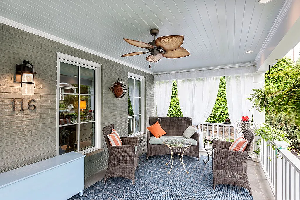 When it’s time to entertain, the backyard stone patio provides an enchanting and private setting, reminiscent of a cathedral-like oasis. Feel the warm embrace of the bluestone front porch, adorned with wispy white curtains and a Bombay fan, creating an atmosphere of relaxation and timeless elegance.