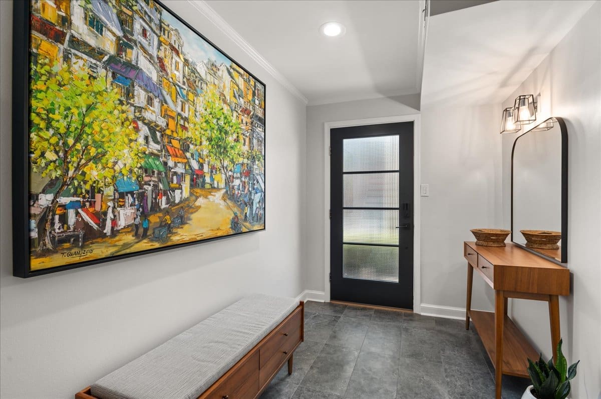 Live a life extraordinary in this gorgeous residence nestled in the core of exciting and historic Old Town. 117 Quay Street is located less than a block away from the waterfront to enjoy strolling along the Potomac, throwing a ball in Founders Park, or sipping a beverage on the patios of the neighborhood’s most dynamic restaurants. Built in 1971 and meticulously re-imagined over the years and over $100k of improvements in 2021 alone, this three-level townhome expresses a mid-century modern vibe while delivering a radiant open layout, pristine oak hardwood floors, fresh neutral paint colors, classic crown molding, and recently installed recessed lighting throughout. Entry-level boasts a sleek privacy glass front door, all new tile floors, and access to a laundry closet, a versatile room that could be a fantastic gym, rec room, or a third bedroom (new egress window and closet), and the interior door leading to/from the one-car garage. The garage has a WiFi opener for added convenience. Ascending the stairs, flow into a memorable living space with 9+ ceilings, a commanding gas fireplace with floor-to-ceiling brick surround, floating wood shelves, and a modern, recently expanded glass French door opening that leads to a remarkable outdoor patio retreat designed for entertaining and dining al fresco. The separate dining area illuminated by a contemporary light fixture has a charming pass-thru/breakfast bar that opens to the kitchen. A kitchen is the heart of the home, and this kitchen flaunts granite counters, stainless appliances, ample cabinet/drawer storage, and a glass door that grants access to a Juliet balcony. The half bath was redone and completes the main living space. The upper level is complete with two spacious bedrooms and two full baths, both updated. The primary has two closets, and an ensuite, with a glass walk-in shower. The second bedroom also has a generous closet and a decorative brick column detail. The attic is available for all out-of-season items. Enclosed cedar fenced backyard with flagstone patio provides a great option for friends and family to gather, and also for four-legged friends to roam safely. A gate provides access to the back alley. NEW HVAC (2-speed), HWH, light fixtures/switches throughout, refreshed landscaping to maximize the curb appeal, and so much more! Don’t miss this opportunity to possess a fulfilling lifestyle of community pride, luxurious surroundings, and absolute convenience.