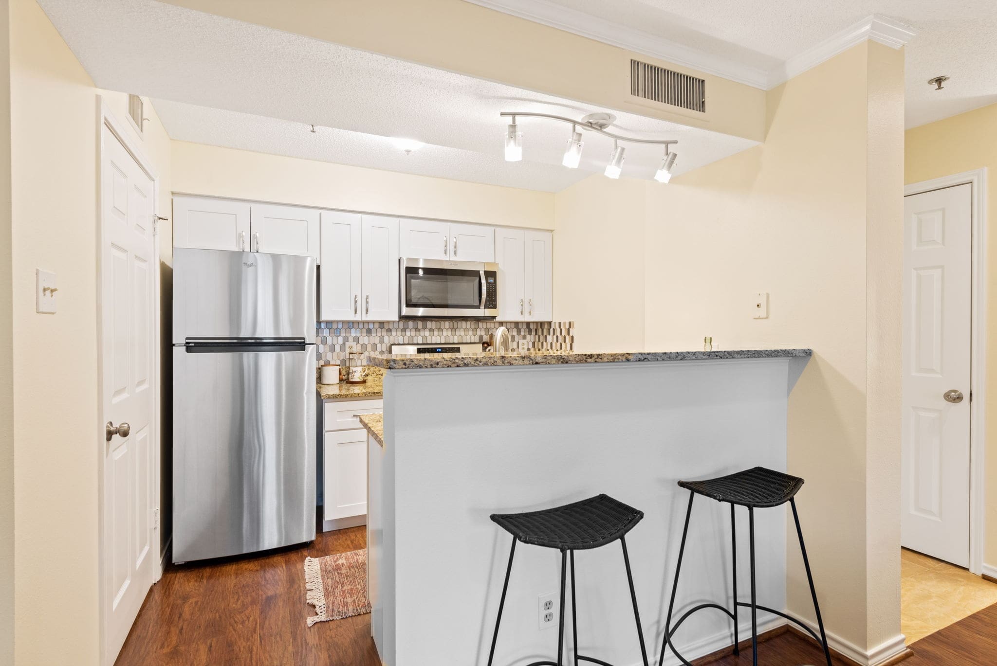 Fantastic first-time home buyer option or investment opportunity! Move-in ready and showcases details and finishes any buyer will appreciate. Step into the unit and be welcomed by the sight of a wood-burning fireplace with mantel. Neutral paint colors complement the open and bright main living space – comfortable for everyday relaxing or entertaining. The kitchen was completely renovated in 2017 and boasts granite countertops, stainless appliances, new garbage disposal and faucet (2022), a unique backsplash, soft close technology cabinets/drawers, and a breakfast bar ideal for quick meals and a future spot for friends/family to keep you company while preparing a feast. A large bedroom is a peaceful space to retreat and offers a walk-in closet for clothing and storage. The bathroom is updated and provides separate vanity/shower areas for enhanced privacy. A new, in-unit, GE stacked washer/dryer was installed in December 2022. Enjoy mornings or evenings on the private balcony that overlooks the community’s courtyard. An extra storage closet is located on the balcony for all out-of-season items. This unit comes with a designated underground garage parking space (#155). The Fountains of McLean is a gated community that offers its residents memorable amenities (outdoor pool, fitness center, sauna, clubhouse, billiards, ping pong). Close to Tysons Corner and all the dining, shopping, public transit (Silver line metro/bus), and convenience the area offers. You will not find a more centrally located home for all you need! *Pets allowed – 1 pet per unit not to exceed 45 lbs. Condo fees cover – water, sewer, trash, snow removal, landscaping, the association’s insurance, and electricity for the common areas.