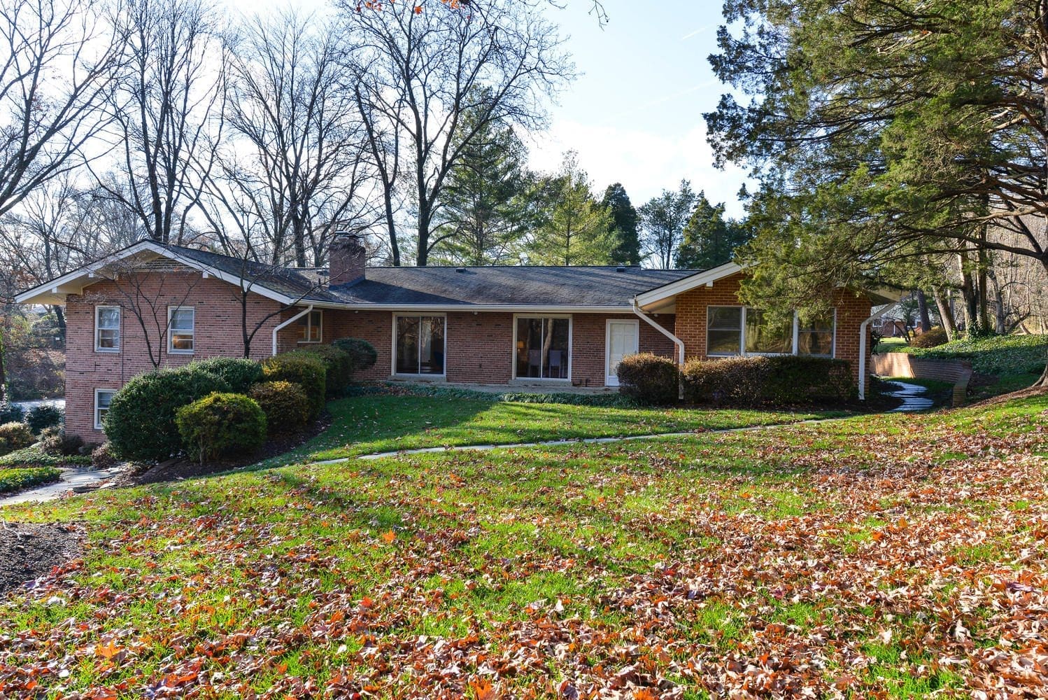 Charming mid-century modern rambler tucked away in quiet wooded neighborhood in the neighborhood of Hollindale. This home sits on a large corner lot that has a long driveway with a two car garage that offers a wonderful private home office space. Freshly painted throughout with new carpet and hardwood floors on both levels. Two gas fireplaces, spacious and extremely bright-even on the lower level. Three main level bedrooms and Master with walk-in closet and large ensuite bathroom. Eat-in kitchen with stainless steel appliances, ample counter space, and bay window. Large family room, two spare rooms and forth bedroom on lower level with full bath. Great patio overlooks expansive yard. Near Old Town & GW Pkwy.
