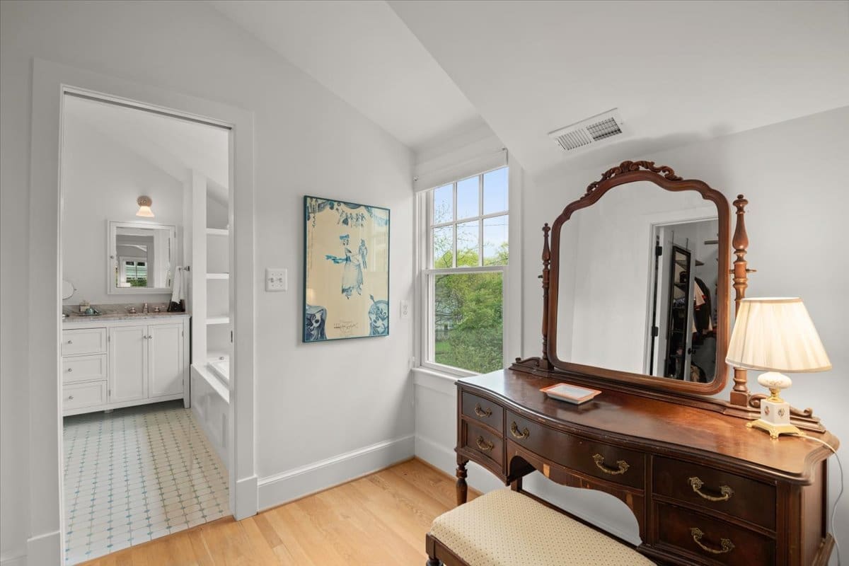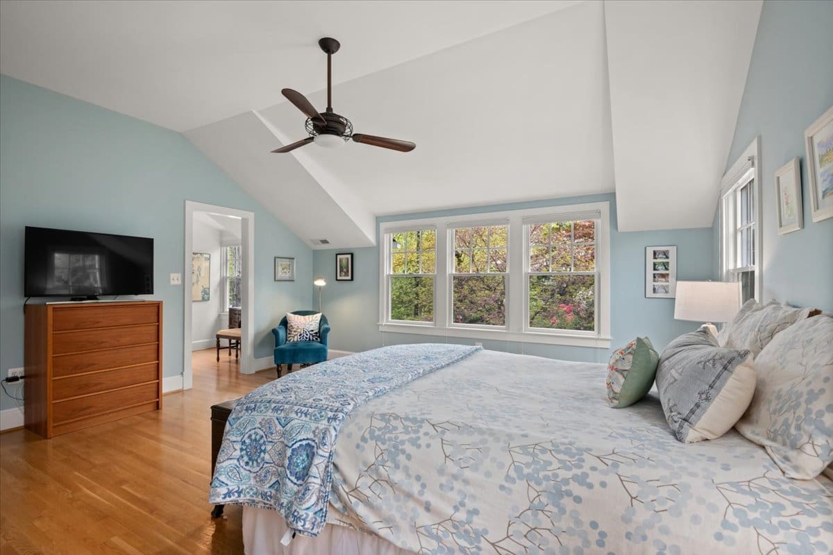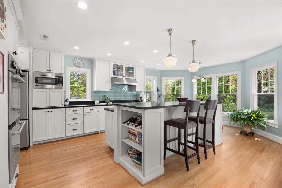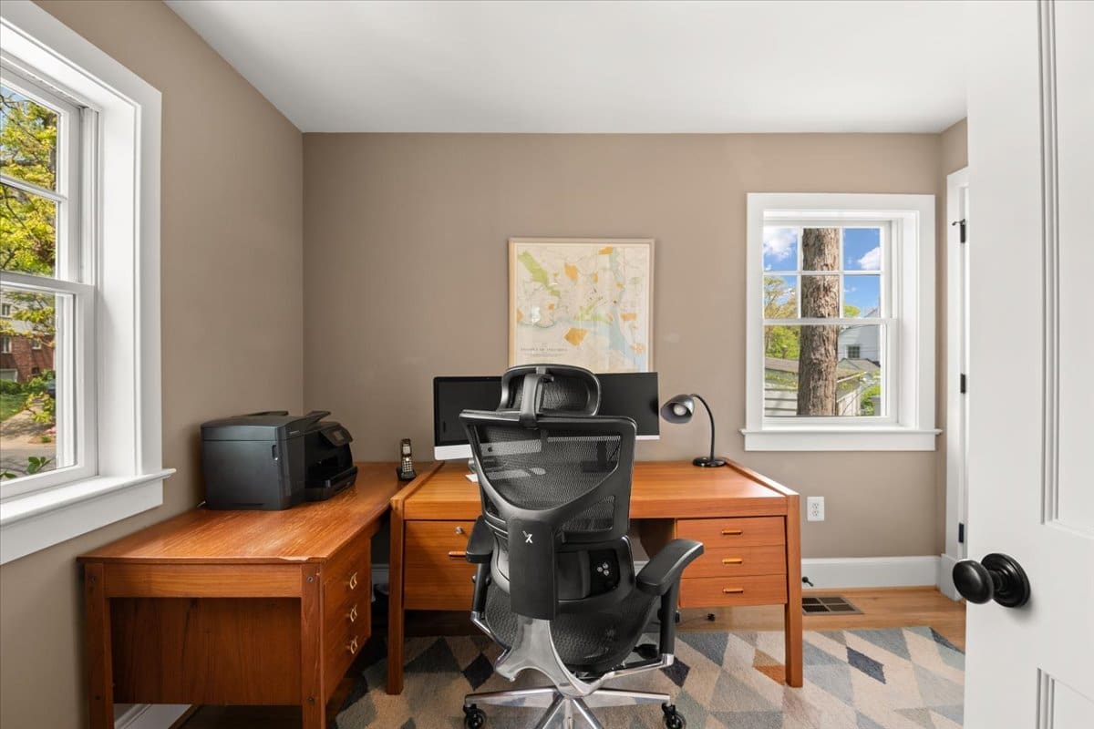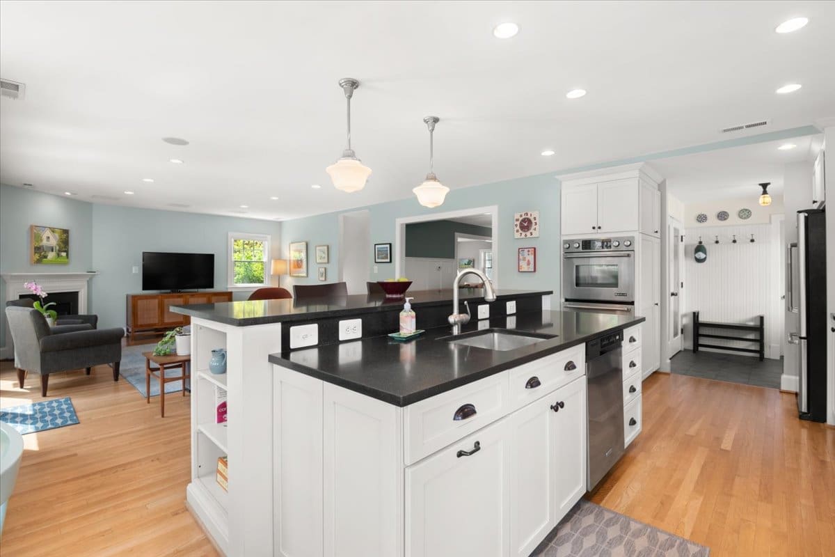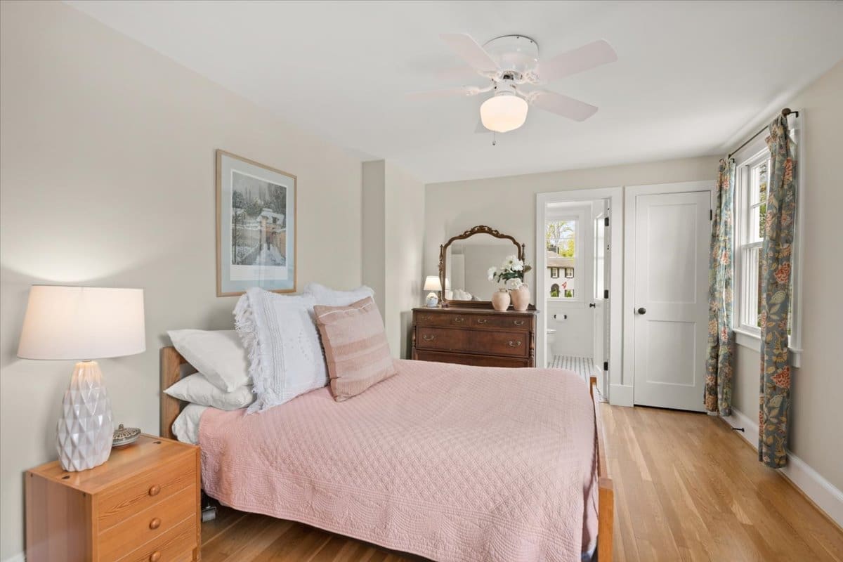 A one-of-a-kind Craftsman home in Beverley Hills, 3307 Elmore Drive is nestled in the heart of this highly sought-after neighborhood. The current owners transformed a classic Colonial into a charming Craftsman, completing a down-to-the-studs renovation in 2008. The crisp curb appeal is enhanced by professional landscaping that provides color all year round. A flagstone walkway leads to a charming front porch, great for greeting your neighbors (and their dogs) as they enjoy a stroll. The interior is spacious and airy with a soothing color palette. Rooms are filled with natural light from the oversized windows. Great open space for entertaining on the main floor with a separate dining room, a large two-level island for buffet-style dining, a cozy gas fireplace, and a wall of windows overlooking the bluestone patio and backyard. A gorgeous, meticulously-designed kitchen boasts top-of-the-line appliances (Wolf/Jenn Air/KitchenAid), white Mouser custom cabinets with oil-rubbed bronze hardware, sleek black granite countertops, and many custom features, including a spice drawer, an appliance garage, generous built-in shelves for cookbooks, and a wine rack – there is room for everything! The first floor also features a full-sized pantry with custom glass doors adjacent to a side-entry mudroom with wainscoting and a home office. The second-floor primary bedroom is the ideal escape with a large walk-in closet featuring Elfa shelving, and the en suite supplies every comfort, including a spa shower and relaxing soaking tub. The second floor also boasts three additional bedrooms and two full baths, including an en suite in the guest room. Attic runs the length of the house offering a huge amount of extra storage and plenty of headroom. A desirable flat, fully fenced backyard with a fantastic patio overlooks a grassy area and established plantings. Welcome home to this lovingly maintained move-in-ready property close to local playgrounds (The Pit), Charles Barrett Elementary, Del Ray, Old Town, and all this area has to offer.