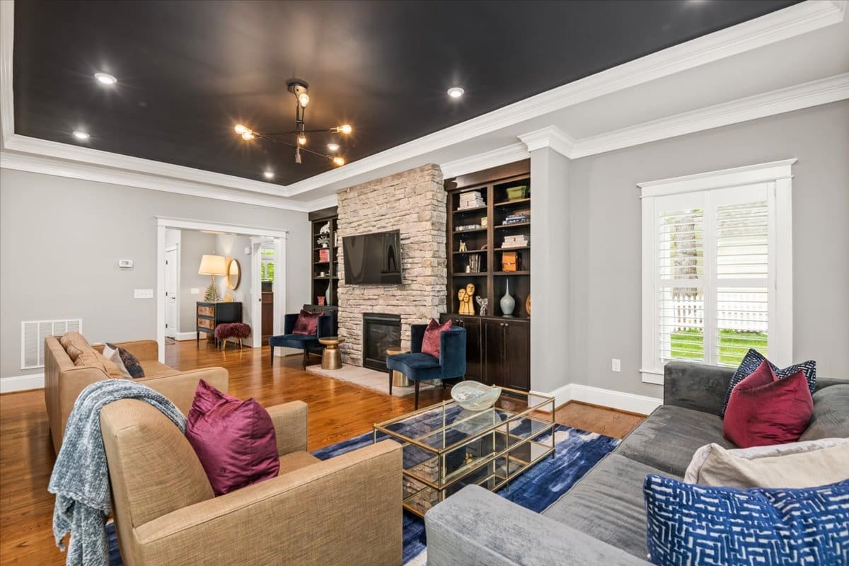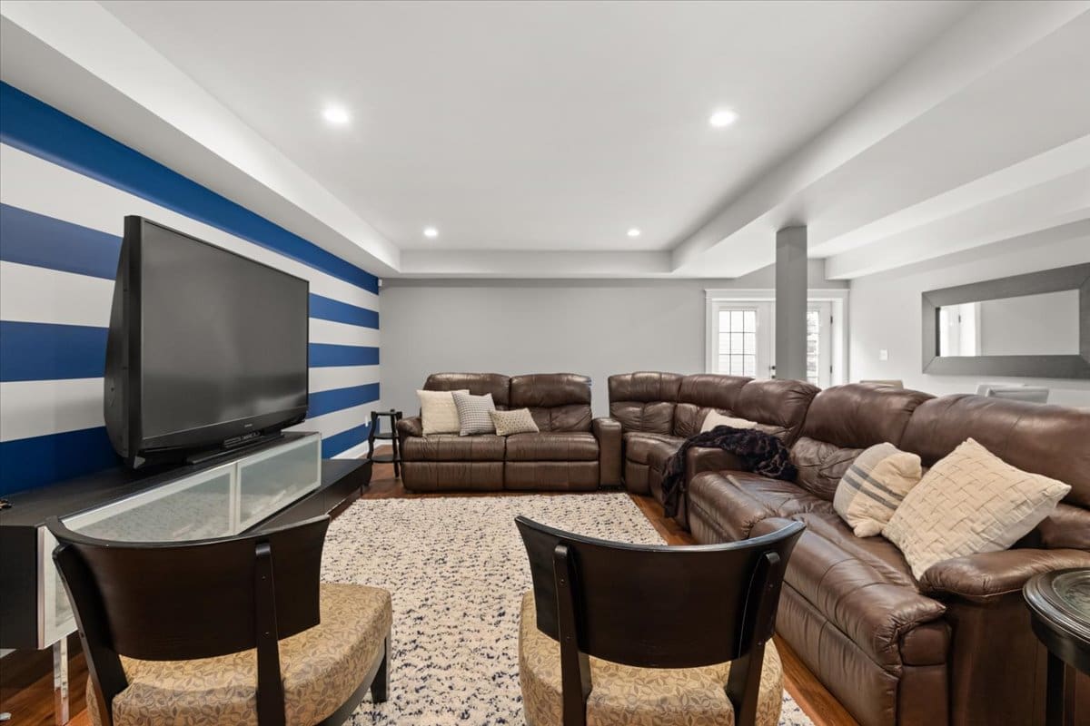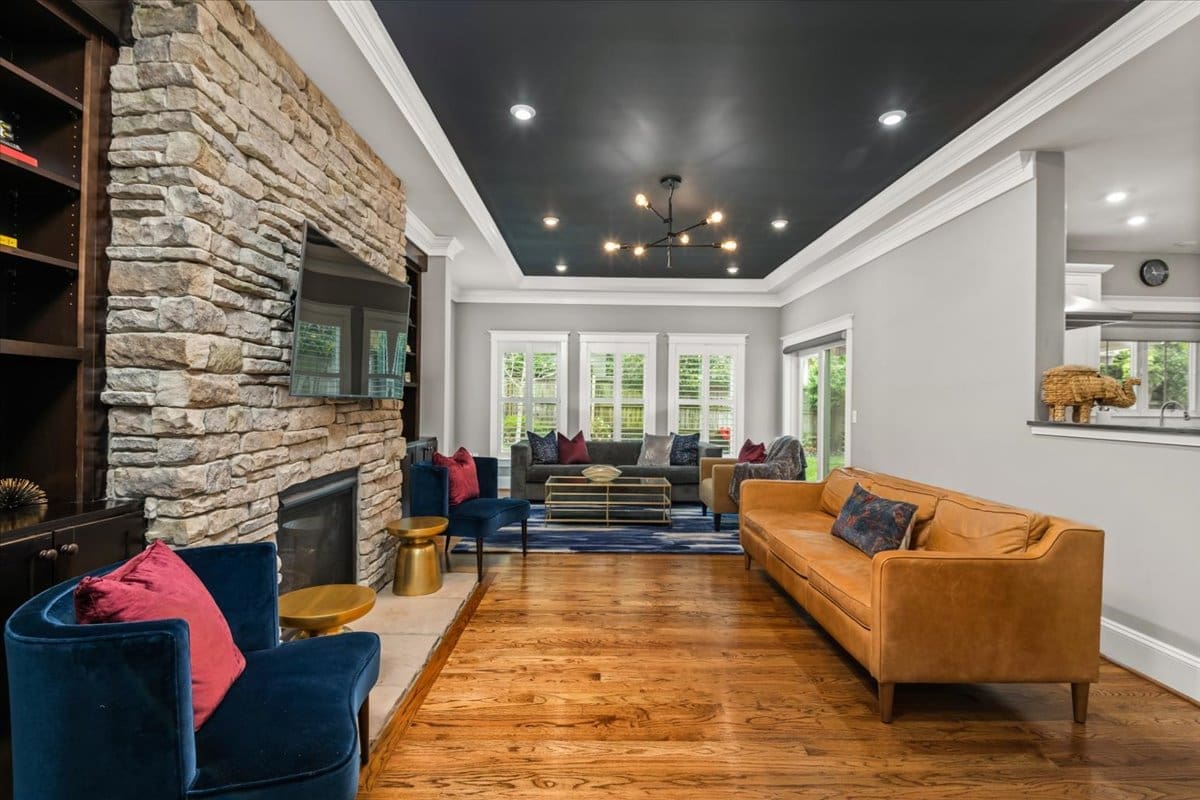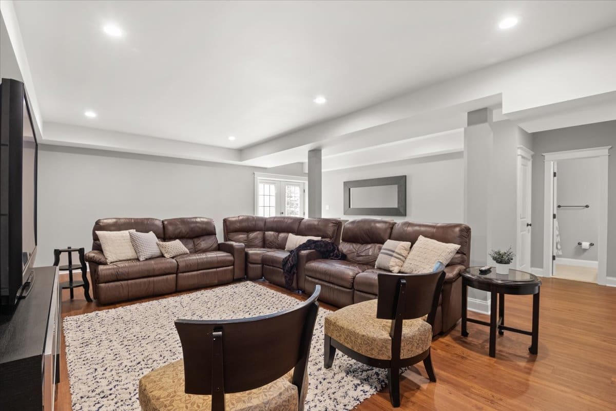 The walkout lower level is where you’ll find the seventh bedroom and a full bath, an abundance of storage, a rec room to watch movies or play games, a dry bar with a wine refrigerator, and a full home gym to help stay on top of any personal fitness goals.