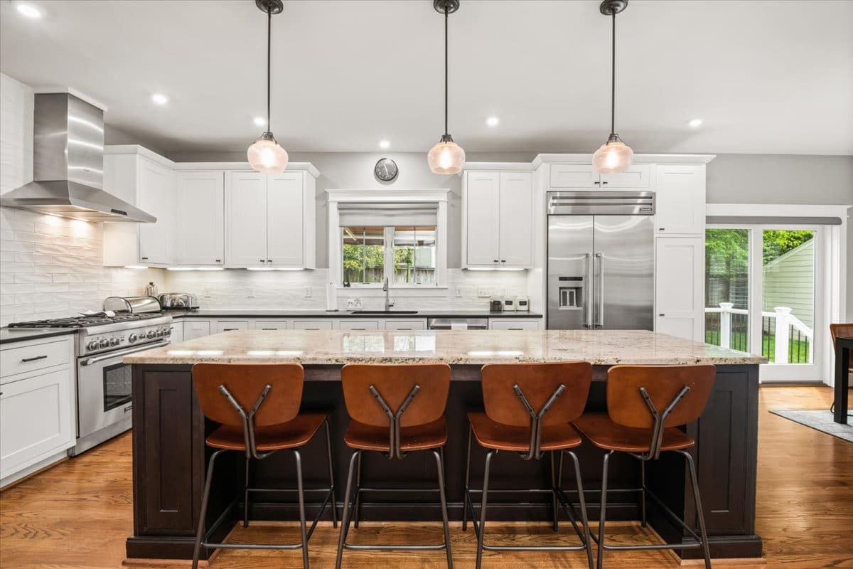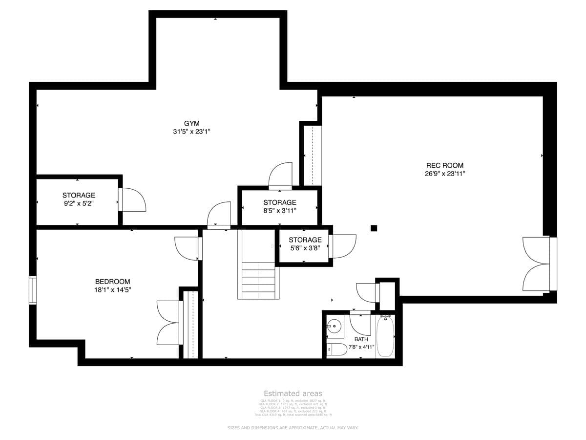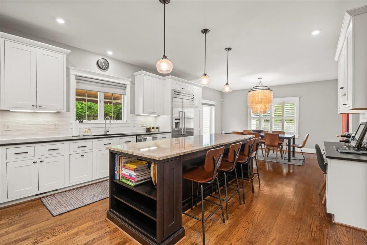 The walkout lower level is where you’ll find the seventh bedroom and a full bath, an abundance of storage, a rec room to watch movies or play games, a dry bar with a wine refrigerator, and a full home gym to help stay on top of any personal fitness goals.
