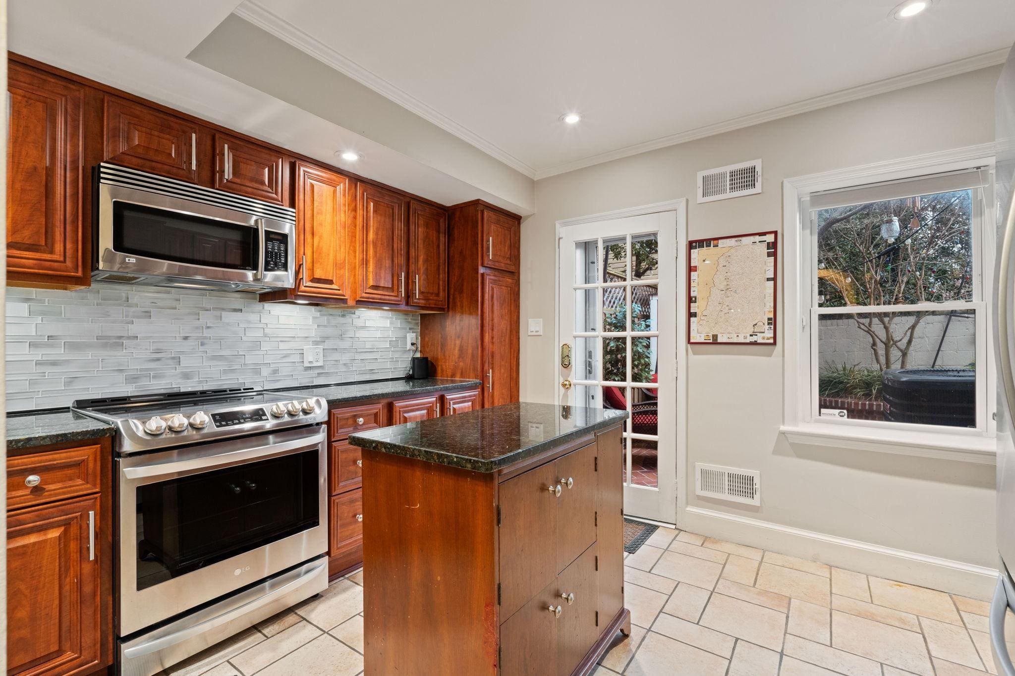 The updated and expanded kitchen (2016) is a chef’s delight, featuring stainless steel appliances, granite countertops, under-cabinet lighting, and a stylish backsplash. Upstairs, the renovated third-floor en-suite bedroom offers a private retreat with generous attic storage.