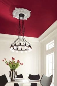 Architectural details on the ceiling make a home feel grand. Turn your ceiling into a focal point with this simple trick: Embellish the area around a light fixture’s attachment with a lightweight, polyurethane ceiling medallion then paint it your chosen hue. Or paint the ceiling a bold color.